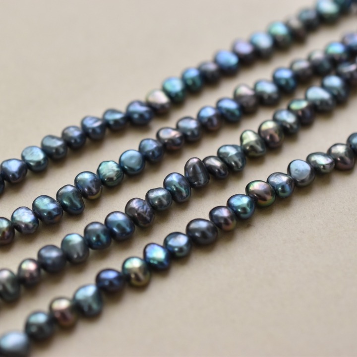 また、粒によってパープルやグリーン、ゴールドを帯びているので、まさに孔雀の羽のような美しい色味なのです。
