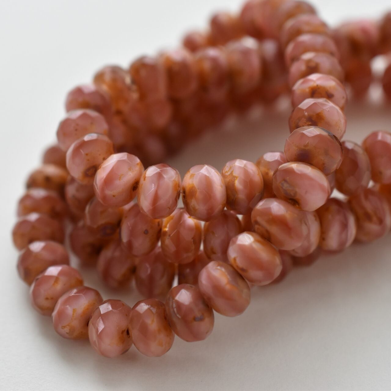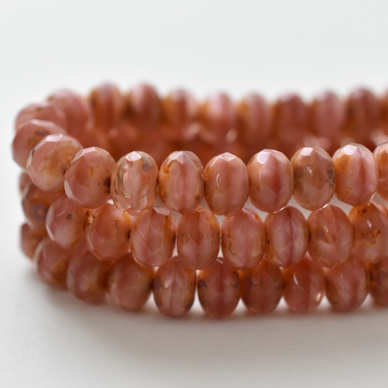 チェコ製ガラスビーズ、ロンデルと呼ばれる形のビーズです。