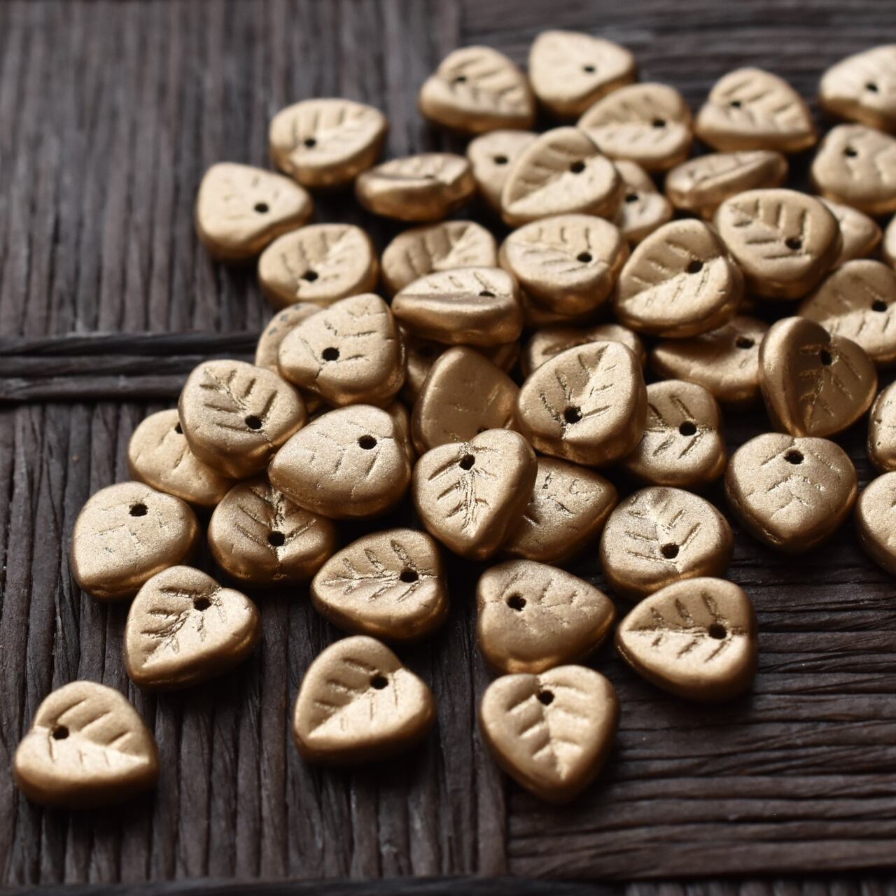 24粒 チェコビーズ リーフ 9mm ゴールド プレストビーズ